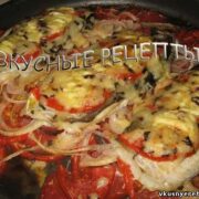 Запеченное блюдо получается практически диетическим, но очень питательным. Если вы хотите приготовить легкий ужин, то этот рецепт будет вполне подходящим. Подавать его можно в горячем или холодном виде, оно очень хорошо сочетается с салатом из свежих овощей.
